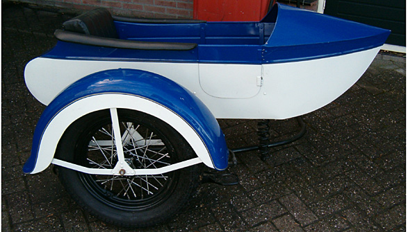 Mooi rechter zijspan voor de bigtwin modellen van 1937 tot 1957. Framenummer 1940.Compleet met aansluitingen.